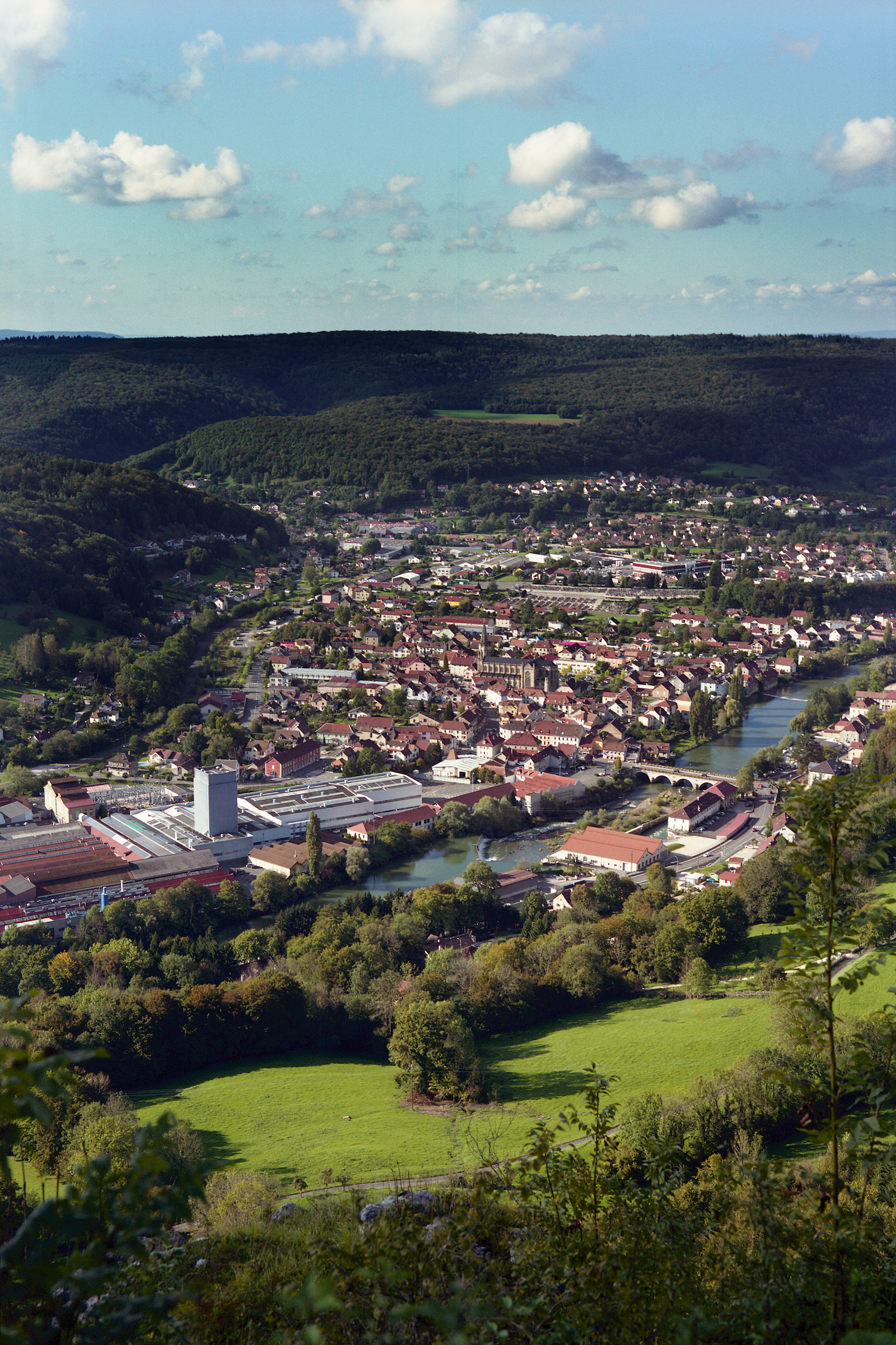 Cette semaine je vous propose cette photo de paysage prise depuis un belvédère, il s’agit de la ville de Pont de Roide. Non, je ne l’ai pas faite avec une chambre ni avec un moyen format moderne et sophistiqué. Bien au contraire cette photo faite à main levée (mais appuyé sur la barrière) est l’une des merveilles que je dois à mon Moskva, un folding russe des années 50 refait à neuf par un réparateur qui a été obligé de cannibaliser trois boitiers en bon état pour avoir les pièces de qualité suffisante pour faire de ce Moskva le boitier qu’il devait être. Car oui dans les années 50 déjà, le « miracle soviétique » commençait à battre de l’aile et les ouvriers sous payés et victimes du stakhanovisme n’étaient pas très motivés pour faire un travail vraiment exemplaire.