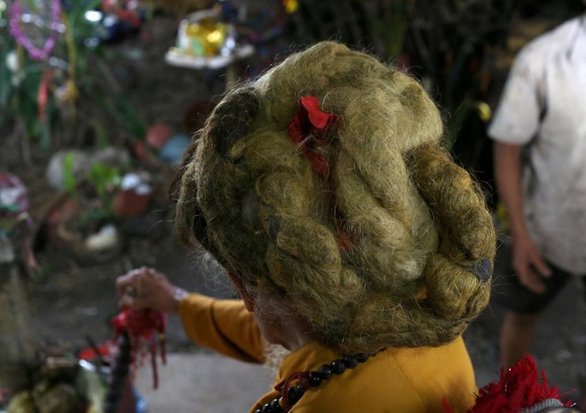Car oui, déroulée, sa chevelure dépasse 4 mètres 80 de long. Pour l’entretenir il a bien sûr besoin de l’un de ses fils.