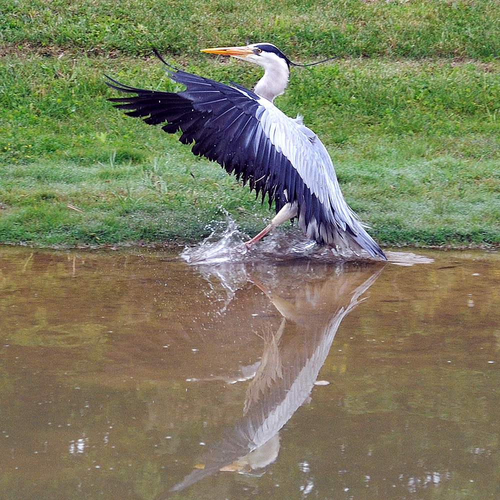 C’était l’après midi du 30 mai 2018. Avec les enfants de mon atelier photo nous étions en train de nous balader appareils en mains pour travailler sur notre thème du mois (les animaux dans la ville) quand soudain j’ai vu ce bel héron se poser sur le petit étang artificiel du nouveau parc municipal. Il avait repéré et allait dévorer une grosse perche (j’ai encore les photos que les enfants ont pris du repas sanglant de cet échassier).