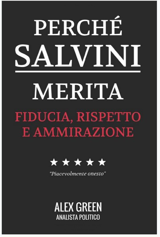 Alors pour ceux qui comme moi n’ont pas fait italien au lycée ni plus tard, le titre à rallonge de ce livre d’analyse politique se traduit par « Pourquoi (les raisons pour lesquelles) Salvini mérite confiance respect et admiration » Ce livre s’octroie, toujours sur sa couverture, une cote de 5 étoiles avec le commentaire « Piacevolmente onesto » qui se traduit par « Agréablement honnête ».