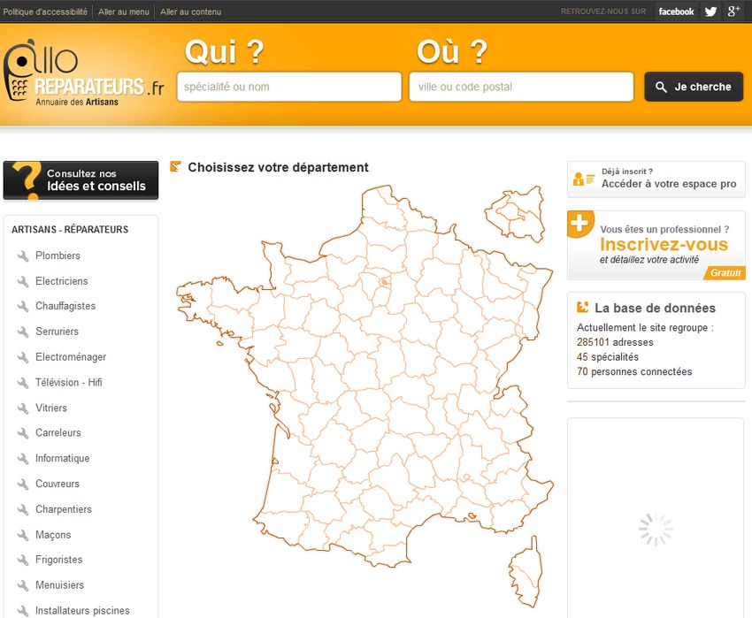 Cette semaine, un autre site très utile puisqu’il permet de trouver dans toute la France les dépanneurs tout près de chez vous. J’ai testé en regardant ceux de mon village et je peux dire que le site est très complet ! Alors si comme moi vous n’êtes pas polyvalent et que vous vous trouvez face à un souci domestique, pensez donc au site http://www.allo-reparateurs.fr/ 😎