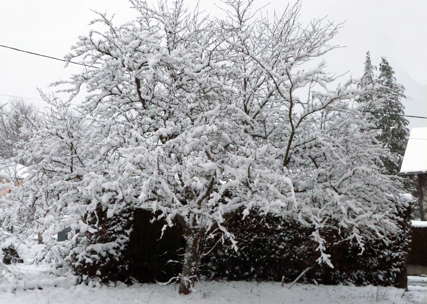 Bref, ce soir je suis comme mon mirabellier sous la neige que j’ai pris en photo en rentrant. Tout comme lui je suis fait de bois tendre, alors des jours comme ça il suffirait de quelques flocons de plus pour me faire craquer. Mais le printemps est encore loin, je me dois donc de tenir par respect pour les enfants et pour certaines familles avec lesquelles on peut encore travailler. 🙄
