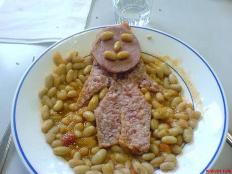 Mais ça ne m’a pas empêché de jouer avec le contenu de mon assiette avant de le dévorer. Voici donc Monsieur cassoulet que j’ai englouti mardi dernier à midi.