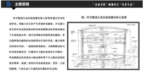 L’appareil peut déformer le temps et l’espace, contrôler le débit du temps, franchir la barrière du temps et de l’espace, et peut être largement utilisé pour les voyages dans le temps, les voyages interstellaires, l’extension de la vie, etc. Le projet prévoit de sélectionner un emplacement en Chine et louer une superficie d’environ 16 acres pour construire une base d’expériences scientifiques. On s’attend à ce que le dispositif soit en mesure de mener à bien l’expérience spatio-temporelle 7 à 12 mois après la mise en place des fonds. »