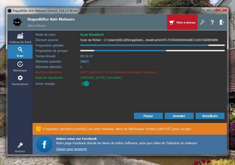 Je vous présente donc (si vous ne le connaissez pas) le fameux Rogue Killer, un logiciel français de la société ADLICE édité à l’origine par une bande de passionnés. Ce logiciel est aussi performant que digne de confiance. On peut télécharger la version gratuite qui ne fait pas de mises à jour de façon automatique et qui n’offre pas de protection en temps réel, pour un nettoyage c’est juste parfait.