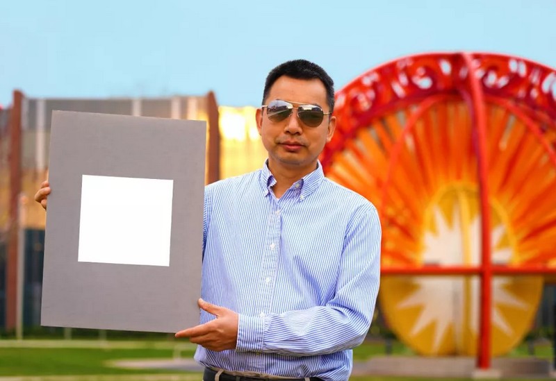 Xiulin Ruan, professeur d’ingénierie mécanique tient dans ses mains un panneau peint avec cette nouvelle peinture qui renvoie 98,1% de la lumière du soleil. Cette peinture utilise le sulfate de baryum, ce qui n’est pas nouveau. Ce qui l’est, c’est le processus qui a permis de maximiser l’effet réfléchissant en optimisant avec une très haute précision la taille des particules de cette substance dans le mélange.