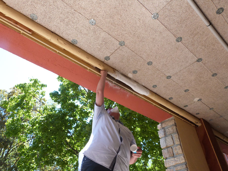 Elle venait de trouver un oisillon tombé du nid sous le préau, selon un des animateur c’est un queue rouge. Alors du coup branle-bas de combat pour trouver une table poser une chaise dessus et monter sur ce fragile dispositif pour atteindre le nid sous le préau.