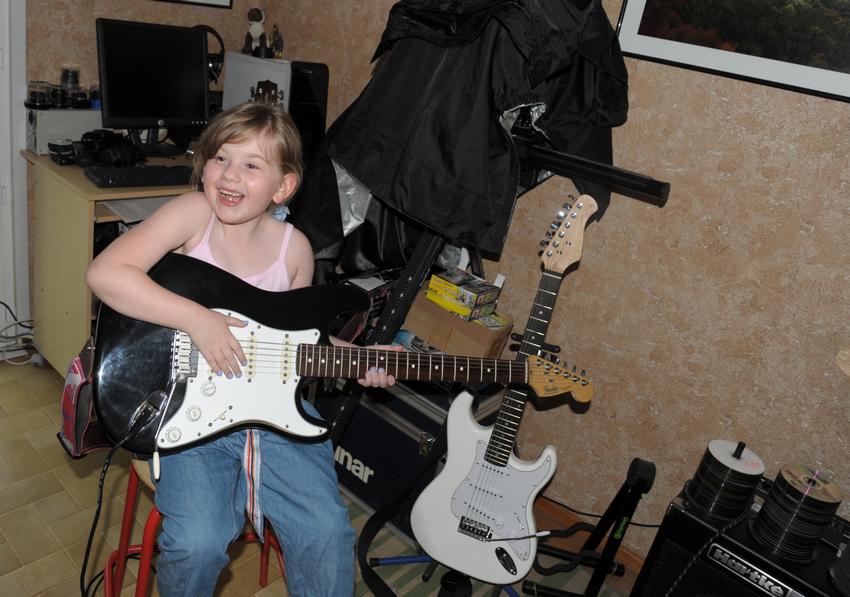 J’espère que ma strat aussi vu qu’elle est tombée à plat sur le sol… 😯 Non ce n’étais pas une bonne idée de la mettre sur les genoux de ma petite nièce de 6 ans surtout qu’il y avait la copie à 90 euros juste derrière….