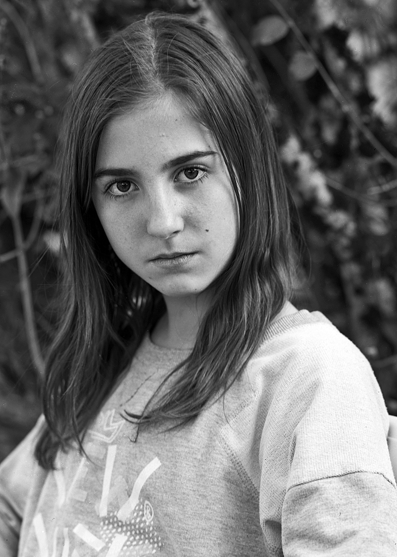 Je ne suis pas d’humeur à aller au labo et encore moins à faire de nouvelles prises de vue alors du coup j’ai re-scanné un de mes anciens portraits. J’aime l’expression de cette ado qui était en 5ème quand je l’ai photographiée avec ses camarades pour un cadeau de la fête des mères. J’y vois de la colère et aussi de la peur, peu de grandir sans doute. Et avec le recul je me dis que oui elle avait bien raison.