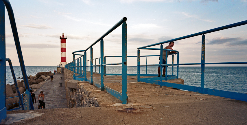 Alors oui, la diapo au coucher du soleil et à contre jour c’est vraiment pas la meilleure de mes idées, mais bon la photo retranscrit bien ce moment bizarre où la lumière devient faible tandis que les couleurs restent bien saturées surtout au niveau de la mer. Trois année sans me baigner, je vais craquer et aller patauger dans le lavoir dans la forêt en bas ! Je serai même encore capable d’en faire une photo… 😈