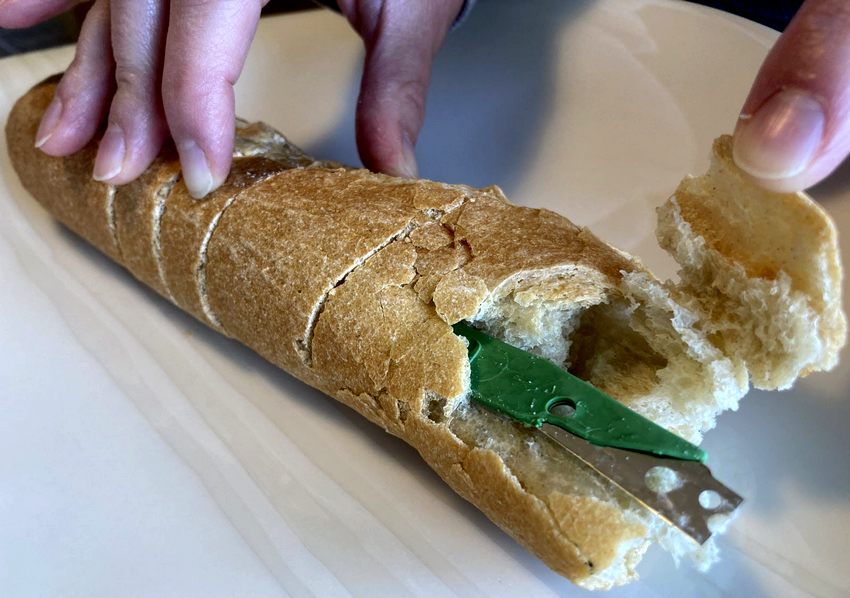 Alors vous connaissez les films dans lesquels on glisse une lame ou une lime dans du pain pour organiser une évasion. Et bien à Thionville le 10 octobre dernier c’est un scarificateur de pain (outil utilisé par les boulangers pour faire les stries des pains et baguettes) qui a été retrouvé dans une baguette que des enfants gourmands ont entamé (fort heureusement du bon coté, donc sans toucher la lame coupante) C’est la mère qui plus tard en voulant couper un morceau de baguette a senti une résistance et a découvert la lame avant de se couper les doigts dessus. .