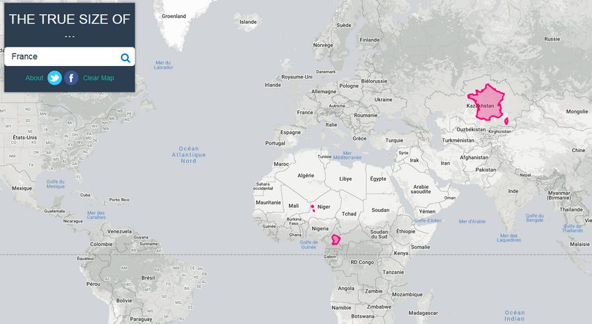 Lorsque l’on regarde la taille des pays sur un planisphère ou un globe, nous nous trompons souvent sur leurs réelles dimensions. C’est pour remédier à cette erreur que le site THE TRUE SIZE OF a été créé.