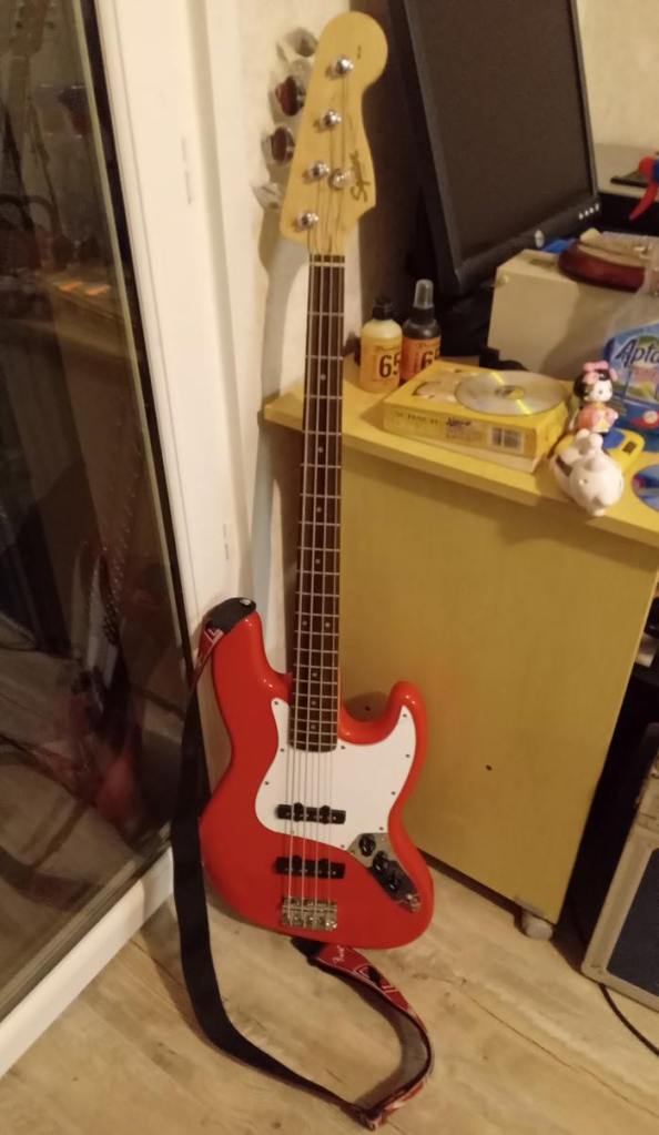 La première chose un peu folle a été d’acheter tout à l’heure une troisième basse (photo ci dessus) uniquement pour la laisser au travail (dans le placard de ma salle dans l’école primaire) pour faire mes exercices tous les jours. Car oui, c’est débile d’acheter cette basse bas de gamme alors que j’ai investi dans une basse de haute qualité mais mes 20 minutes de pause quotidienne au boulot sont plus que ce que je peux dégager en temps personnels les soirs et le weekend. En plus de ça cet instrument me sera utile pour transmettre mon amour de cet instrument aux enfants musiciens du groupe. Bon, cet achat n’était pas vraiment prévu, à la base je devais juste acheter des médiators (les trucs en plastique pour gratter les cordes) et j’ai découvert que c’était mon luthier qui était devenu le nouveau vendeur du magasin ! Du coup en achetant chez lui j’ai une double garantie: bon conseil et service après vente. L’instrument n’est pas exceptionnel, à vrai dire il sonne un peu trop crade, une vrai casserole comparé à ma chère Fuyubi Chan ! Mais pour faire l’andouille au boulot ça sera très bien. Son nom ? Aka Chan ! Un jeu de mot japonais, aka veut dire à la fois « bébé » et « rouge » oui je me la raconte…