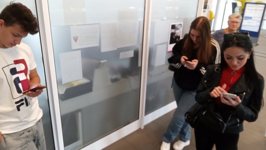 Fin de cette thématique avec cette photo prise dans la file d’attente pour prendre le billet de train pour ma cousine qui va aller jusqu’en région parisienne pour se faire refaire les ongles et les cils… 😯 Au lieu de discuter chacun pianote sur son truc sauf la mamie derrière qui elle n’en a pas. Mode autistique !