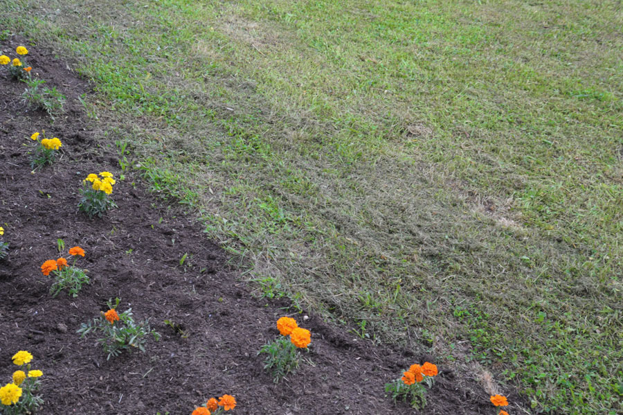 Et c’est doute doute inspiré par les performances de mon neveu dont je suis si fier que j’ai enfin eu le courage de tondre une première partie de la pelouse, d’où le titre et les deux photos. 😆
