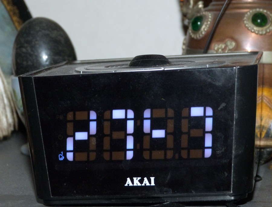 Ce soir je vais être bref car je suis épuisé par ma journée et par la nuit qui a été très courte faute à un orage très violent qui a sévi du soir au matin. Cet orage a été si puissant qu’il a déglingué mon radio réveil qui ce matin affichait ceci :
