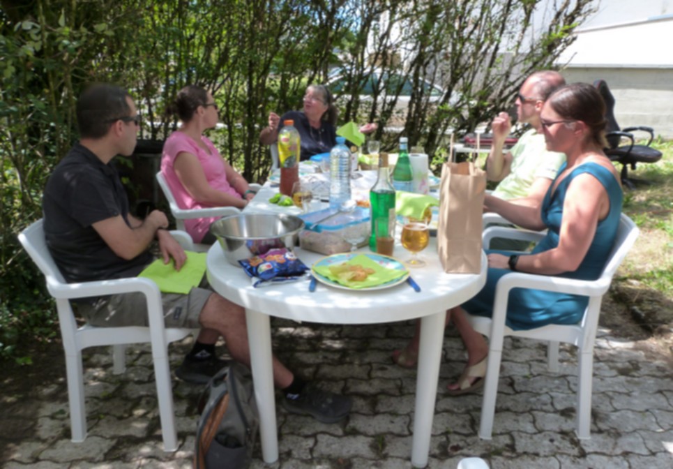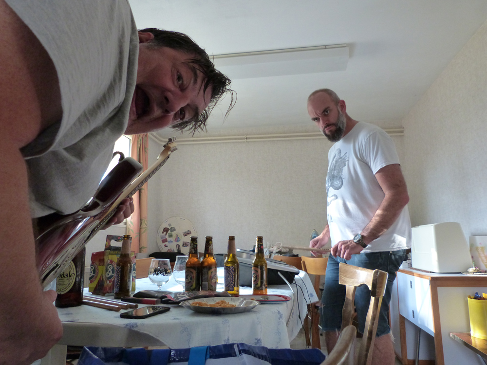 Nous avons aussi bien bu et bien mangé. Pierrade, entrées sympas, salades, desserts variés… Le tout arrosé de bon vin et d’un festival de bières.