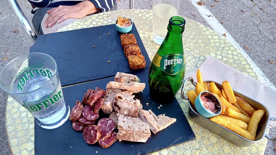 Nous avons donc dévoré ce plateau apéritif de falafels et de saucisse de paysan accompagné de quelques frites.