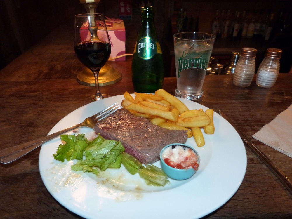 Alors oui, une fois de plus je ne suis pas cohérent avec moi-même ça c’est une chose, mais j’ai aussi perdu de vue mes sages décisions en allant dévorer une pièce de viande rouge et un verre de Gamay le tout noyé par un Perrier.