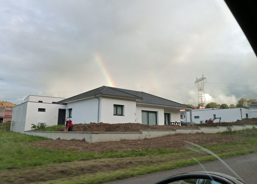 Les arc en ciel sont toujours doubles, il faut juste bien regarder. Mais celui-ci photographié à travers la fenêtre de ma voiture hier soir (coucou monsieur qui jardine) s’est dessiné au dessus d’une des maisons construite dans un quartier situé pile-poil sous des lignes à haute tension… J’espère pour eux que le terrain n’était pas trop cher. Je ne comprends pas que l’on décide d’installer sa famille dans un tel environnement. Mais bon je dois être trop con. 🙄