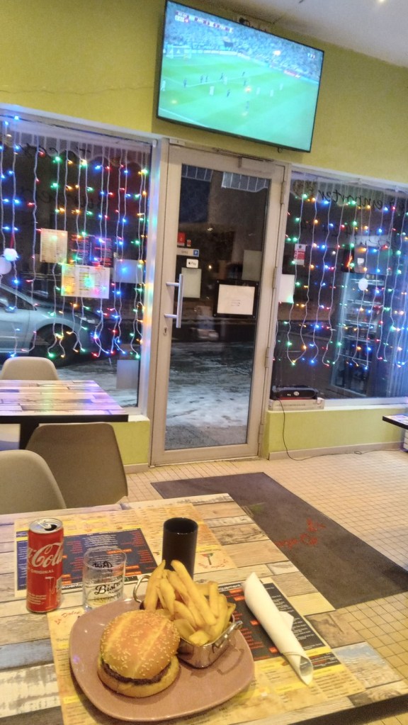 A 19h40, l’autre copain arrive et me parle de sa nouvelle vie entre la Suisse et la France, il semble être heureux, tant mieux pour lui. Nous mangeons ensemble et nous nous séparons vers 22h00 mais moi je retourne au pub et je finis la soirée avec le Pascal qui a fermé son comptoir à graisse et le Léo qui nous annonce qu’il va reprendre un bar dans une ville pas loin. Je les quitte vers une heure du matin car ils commencent à fumer au comptoir.