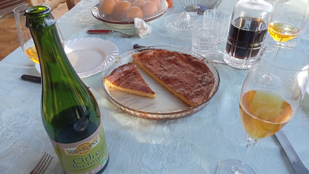 Mais il reste Patricia et son compagnon, ces deux voisins peu isolés qui font le même constat que moi sur la tendance à nos voisins âgés à se replier sur eux-mêmes et à nous fuir. Alors histoire de faire revivre un peu de convivialité dans le quartier, j’ai fait avec brio une magnifique galette comtoise que nous avons dégustée légèrement tiède car sortant du four avec un très bon cidre brut bio de Bretagne.