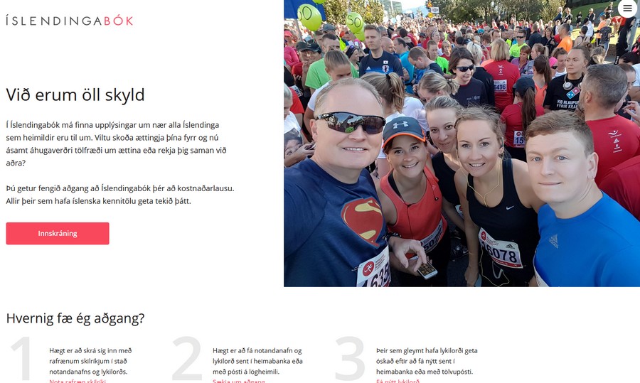 L’accès à la base de données généalogique Íslendingabók reste bien sûr limité aux citoyens islandais et aux résidents légaux d’Islande qui ont reçu un numéro d’identification islandais (kennitala).