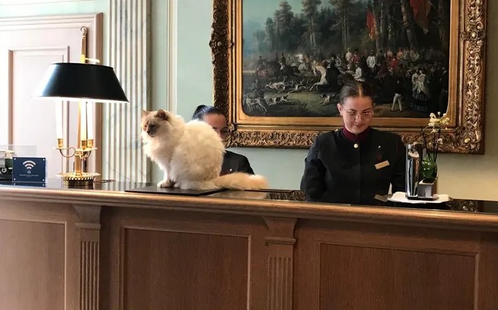 Le 5 mars le journal Grand est de France 3 rapporte le cas de Kléopatre, un chat qui vivait à l’Hôtel Bristol à Paris mais qui s’entendait mal avec un autre chat et qui a trouvé une autre place en Allemagne à Baden-Baden au Brenner, un autre palace où il fait la joie des mamies friquées qui lui font des papouilles à longueur de journée. L’hôtel a édité une carte à l’effigie de la féline. « A ses plus grands fans, nous offrons une carte, signée par elle, avec l’empreinte de sa patte » L’article précise que le chat a été malheureux pendant le confinement car il ne voyait plus les clients.
