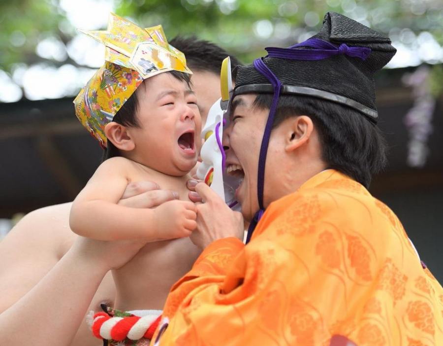Accompagnés par leurs parents, des bambins portant le traditionnel tablier de cérémonie des lutteurs sumo, le « naki-zumo », se sont confrontés sur le dohyo du temple Sensoji à Tokyo. Face à face, les marmots langés se défient : le premier qui pleure rafle la mise. Si les deux fondent en larmes en même temps, c’est alors le bébé le plus bruyant qui gagne.