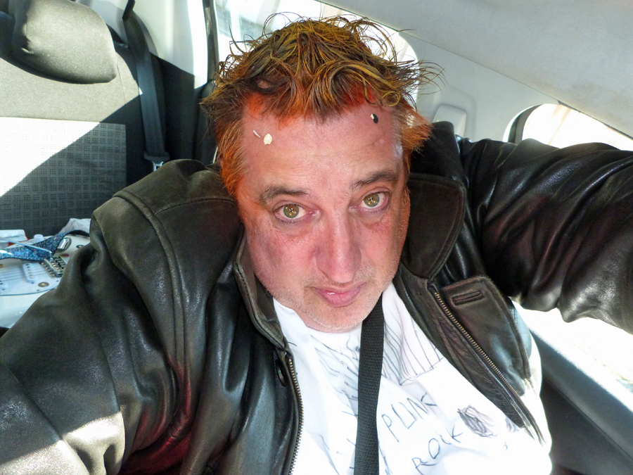 Aujourd’hui c’était le carnaval de l’école et je me suis bien amusé même si j’ai peiné comme mes collègues pour piloter nos 12 gamins dans les rues avoisinant l’école primaire. J’étais déguisé en punk, coiffé et peint par les collèges et je me suis baladé avec une guitare couverte d’autocollants et branchée sur un petit ampli qui s’accroche à ma ceinture.