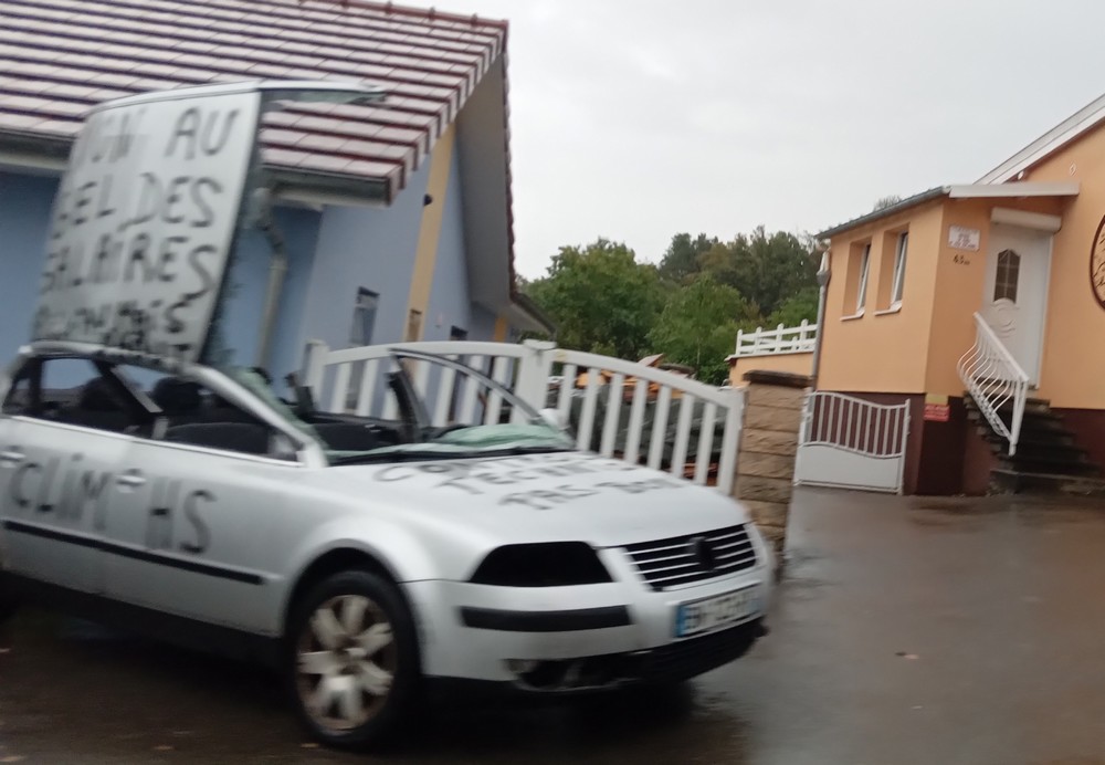 Et oui, je le pensais calmé, mais non le voici qui vient de remettre ça. Cet homme qui a une maison devant laquelle je passe chaque jour, a décidé cette fois-ci de mettre une épave de voiture devant sa porte.