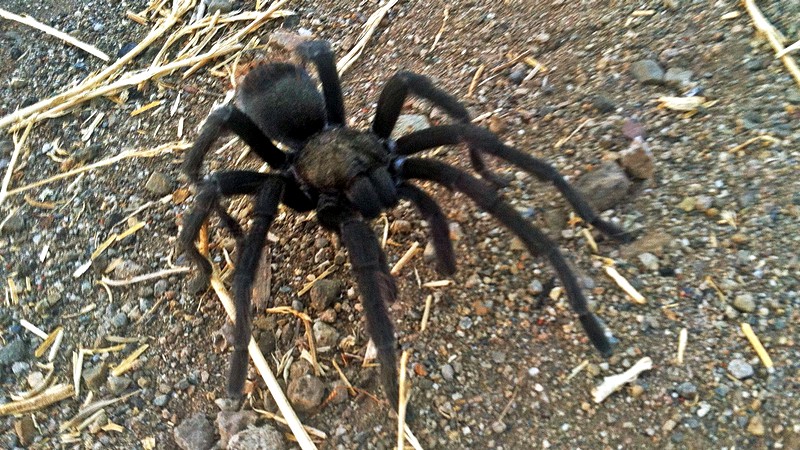 Ces temps derniers les intempéries très rares dans la vallée de la mort qui ont causé des inondations (un comble pour la région) et le fait que pour mes amies les araignées l’automne soit la saison de reproduction où les mâles cherchent les femelles (sur la photo on dirait plus une femelle sans doute dérangée par la pluie), bon bref tout ça fait que pas mal de créatures du désert californien se retrouvent en vadrouille et traversent les routes.