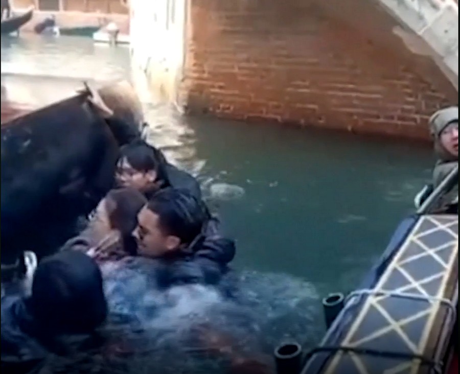 C’est alors que ce qui devait arriver arriva, ils finirent par mettre tout le poids d’un coté de la gondole qui forcément chavira et fit tomber tous ces abrutis et le pauvre gondolier dans le Rio de la Verona près de l’Opéra Fenice. (Une phrase au passé simple c’est un luxe rare, non ? )