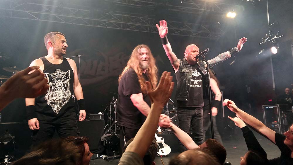 Alors comment raconter tout ça, dire qu’une fois de plus j’ai apprécié le contact des fans de métal, un milieu où règne le respect qui se manifeste par exemple dans le fait qu’une personne s’excuse si elle vous heurte, vous repaye une bière si jamais elle a fait tomber la votre et que si pendant les moments de contacts acharnés de type wall of death, quelqu’un tombe à terre, il est relevé de suite par une autre personne avant d’être piétiné. Le genre de climat que je qualifierai de fraternel.