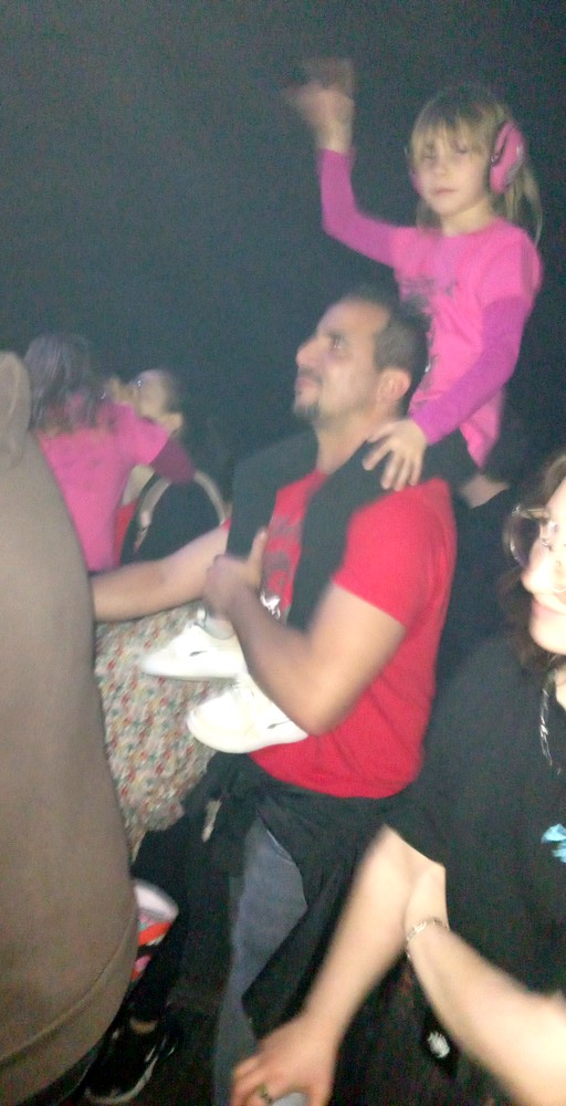 Ce soir je pourrais aussi te raconter que j’ai vu à ce double concert de métal des parents amener leurs jumelles roses (non pas pour voir de loin mais pour leur montrer la scène de tout près) :