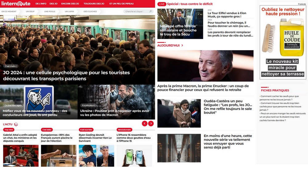 Alors que face au crétinisme en pleine augmentation des masses prenant tout au pied de la lettre et dépourvues d’humour, de moins en moins de médias se livrent à la tradition des blagues du premier avril, le site de l’internaute a osé aujourd’hui transformer sa page d’accueil en articles bidons. 😆