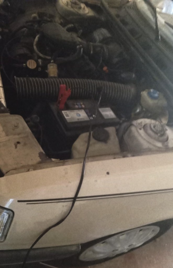Car oui aujourd’hui encore je n’ai pas fait grand chose mis à part tenter de ressusciter ma pauvre 309 GT dont la batterie est morte. Le copain m’a prêté une autre batterie mais elle avait besoin d’être chargée et au moment où j’écris ces lignes, elle reste sous tension en attendant qu’elle soit prête pour un autre essai.