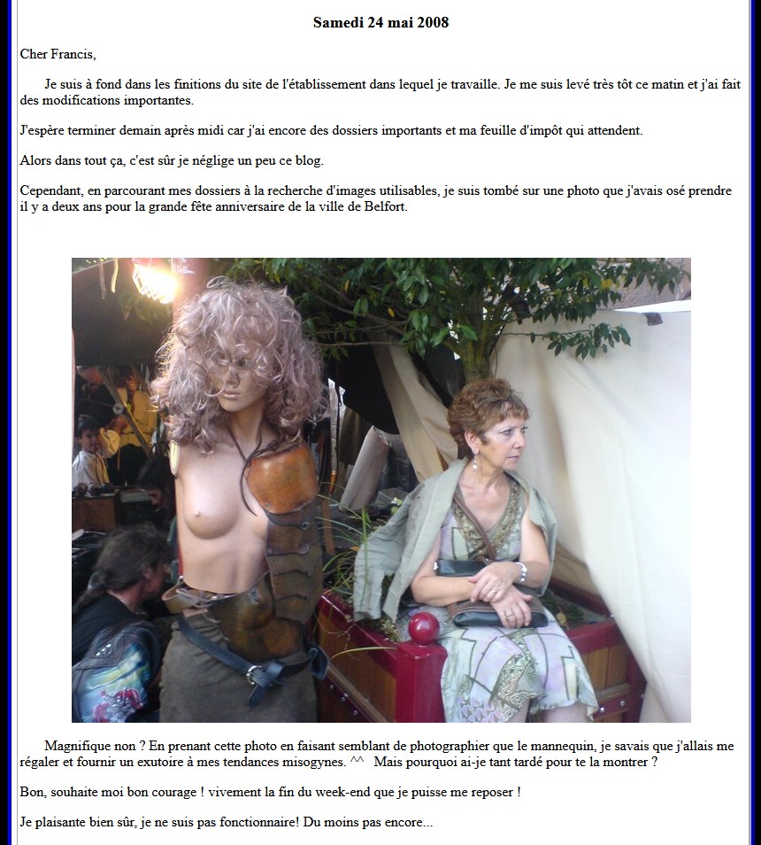 Alors voilà Francis, j’espère juste que nous seront encore meilleurs pour vendredi soir, et ce sans Jack. Je commence à redouter la fin de cette activité, le vide sera atroce…