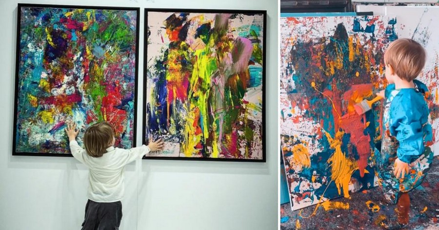 En Allemagne, Laurent Schwarz, un enfant d’à peine deux ans et demi, fait parler de lui depuis quelques mois. Il faut dire que ce très jeune garçon, on peut dire bébé, réalise sans aucune aide des toiles stupéfiantes qui au début se vendaient 800 euros maximum mais qui depuis juin s’arrachent à plusieurs milliers d’euros. Un acheteur spéculateur a même proposé à la mère de l’enfant de racheter sa première toile « les doigts » au prix de 136 000 euros !