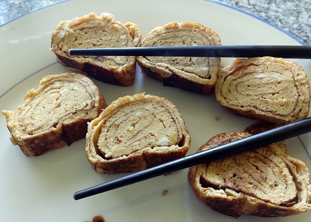 Les tamagoyaki sont ces omelettes roulées/feuilletées que l’on trouve dans les gamelles (Bento) que se font encore les japonais pour manger rapidement le midi sans avoir besoin de four. Une façon de s’alimenter qui leur vient de leur passé et qui reste fortement ancré dans la culture nippone.