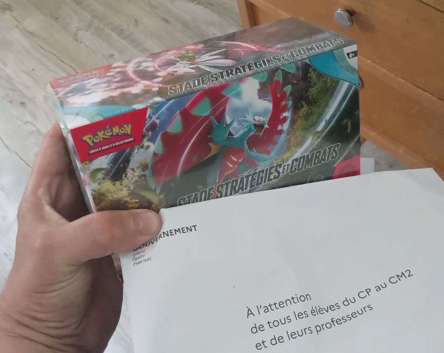 Et aujourd’hui c’est encore mieux vu que les démons qui résident dans ce souk ont relâché la lettre contenant la pièce de 2 euros édition olympique et la lettre du président à l’occasion des jeux, ma carte Kiabi et alors là j’en revenais pas, un coffret scellé Pokemon que je pensais perdu à jamais et qui contient 11 boosters !