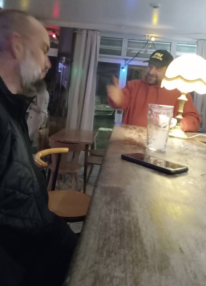 J’avais largement dépassé le litre de bière noire lorsqu’il est entré.Avec le copain Fred on a commencé de discuter et je me suis pris une claque. Je ne me souviens plus de tout ce dont nous avons parlé mais une chose est sûre, ses connaissances étaient très vastes.