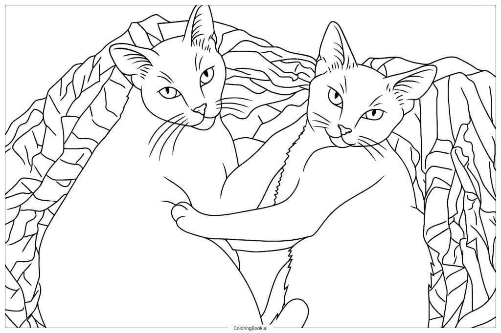 Vous vous souvenez de la photo de mes deux chats dans un carton ? J’ai donné cette photo sur un site gratuit ( https://www.coloringbook.ai ) qui fait tourner une IA qui l’a transformée en ça :