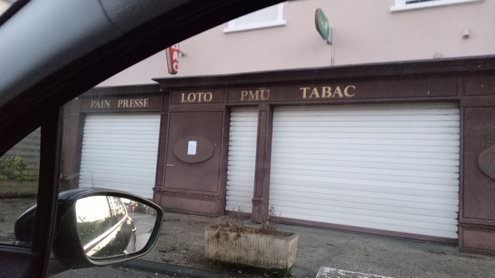 Alors bizarrement de toutes ces mauvaises choses, je ne veux illustrer que par la moins grave, le bar tabac fermé avec l’affiche « Fermeture définitive ».