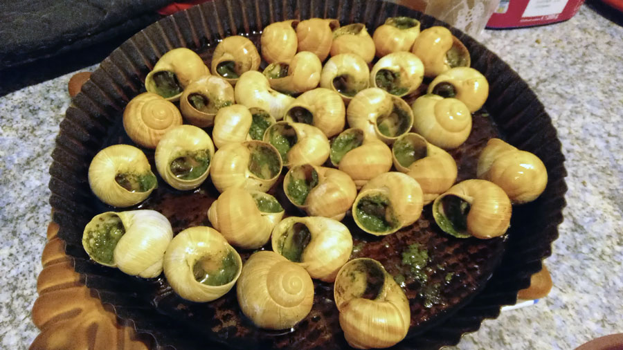 Mon seul repas de ce jour, 35 escargots achetés au supermarché de la ville d’en bas. 35 et pas 36 car il y avait une coquille vide.