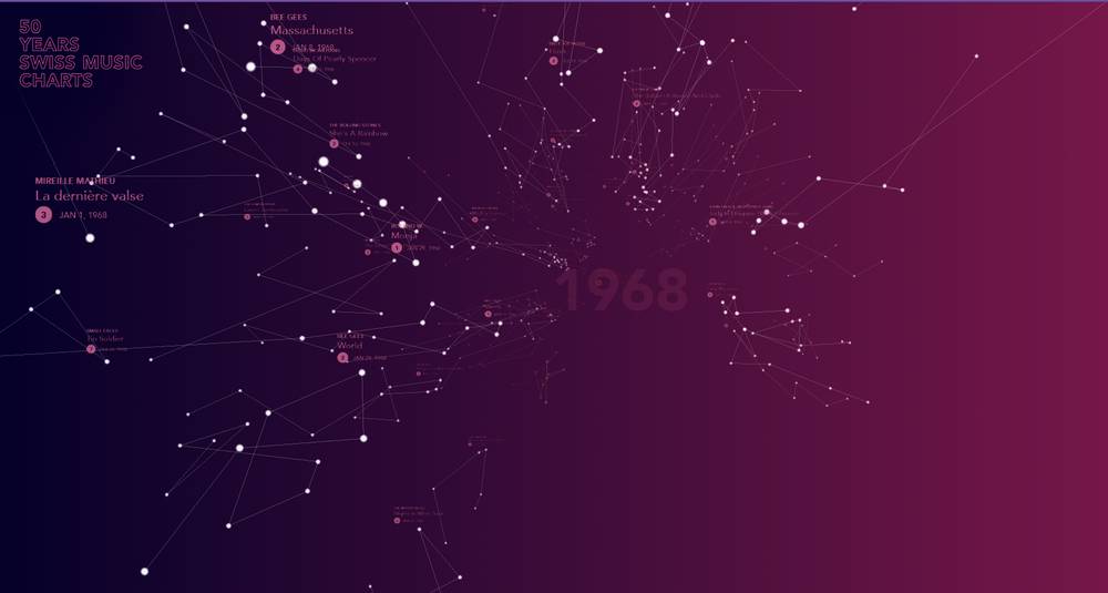 Le site Internet https://50-jahre-hitparade.ch/ est assez particulier car il permet d’explorer 50 ans de chansons devenues des hits en Suisse. Le mélange est étonnant mais pas autant que la façon de naviguer d’une année à l’autre en scrollant. Une expérience vraiment sympa !