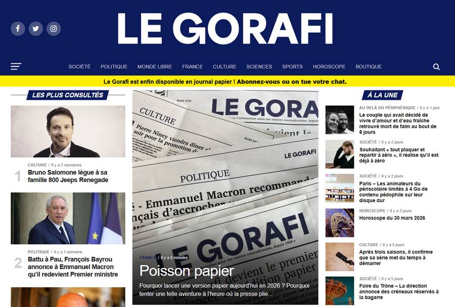 Oui quel meilleur jour qu’aujourd’hui pour se souvenir de l’existence de ce site internet parodique gavé de fausses nouvelles décalées tombant parfois ouvertement dans l’humour noir. Et oui, je veux bien sûr parler du Gorafi.