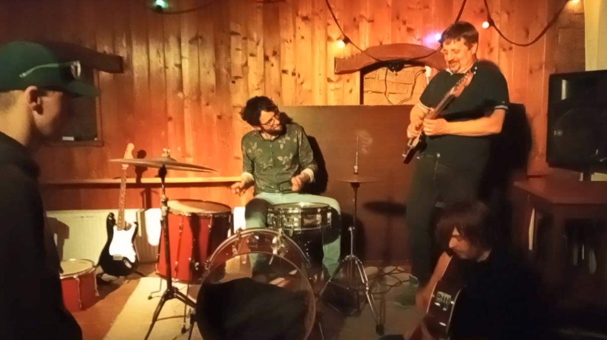 Mercredi soir j’ai goûté à quelques beaux instants de félicité en écoutant et en jouant de la musique avec des musiciens chevronnés et éclatants de bonheur. De cette séance mémorable il ne reste que quelques vidéos (et encore je cherche la carte sur laquelle j’ai enregistré les meilleurs moments) et cette photo qui est une capture d’écran d’une vidéo faite avec mon téléphone vers 1h00 du matin.