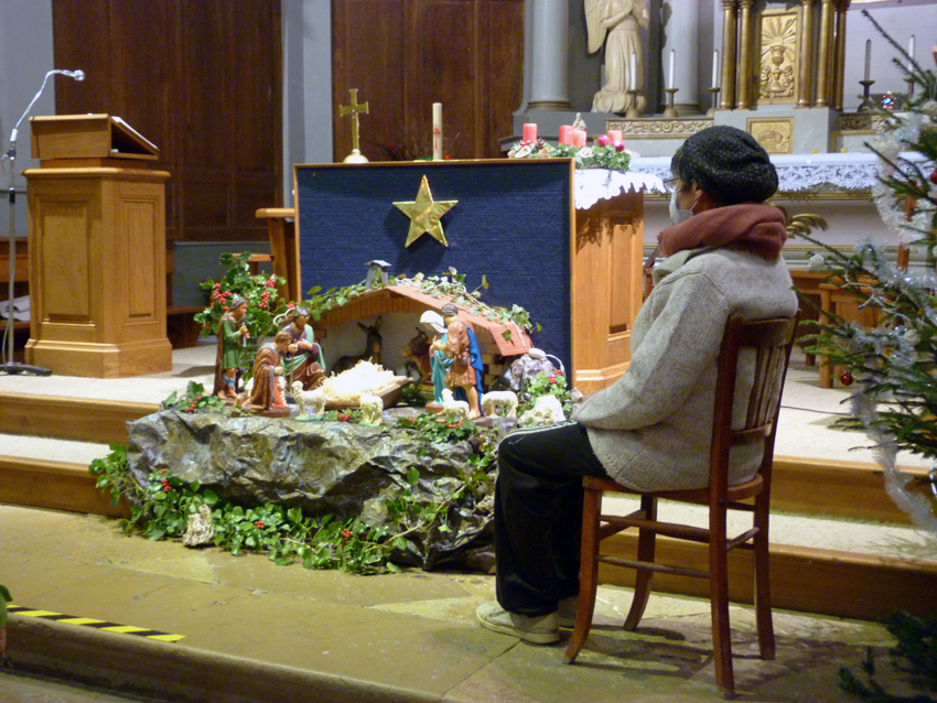 Cette femme masquée assise sur sa chaise qui regarde la mangeoire pour l’instant vide de l’enfant Jésus, c’est une image un peu insolite mais c’est aussi quelque part un genre de note d’espoir, non ? 🙄