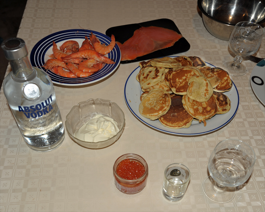 La photo de cette semaine qui est la première photo de cette année 2021, montre ce que j’ai mangé pour mon réveillon. En fait je n’ai mangé qu’une dizaine des blinis que j’ai fait moi-même avec de la crème et des œufs de truite faute de trouver un caviar digne de ce nom. Avec ça un shooter de vodka que j’ai terminé en grimaçant. Bref un réveillon frugal mais pas de gâchis, le reste je l’ai mangé le lendemain avec l’aide de mon chat. 😆